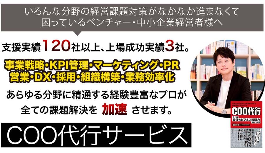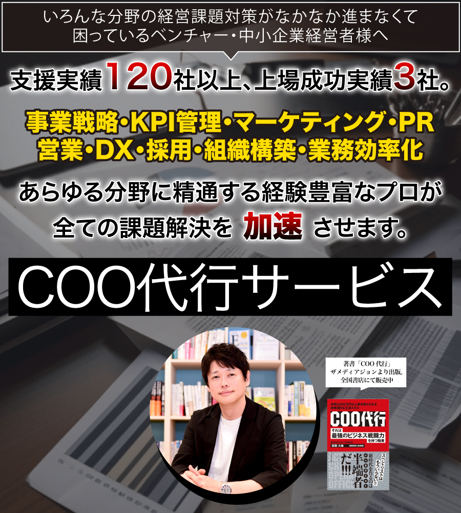 株式会社ザメディアジョンより2023年11月30日に書籍「COO代行」が発売され全国書店に並んでいます。
